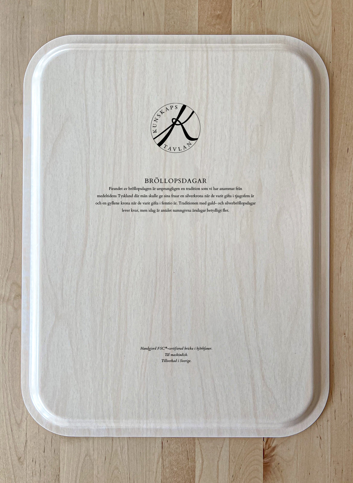 Vacker handgjord bricka som också berättar historien om varför vi firar bröllopsdagar.