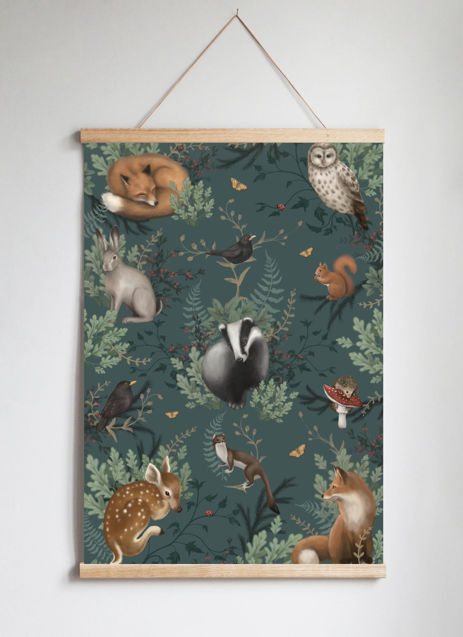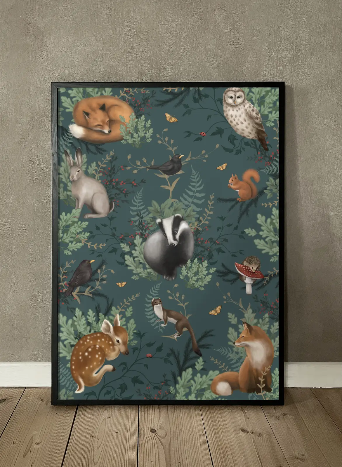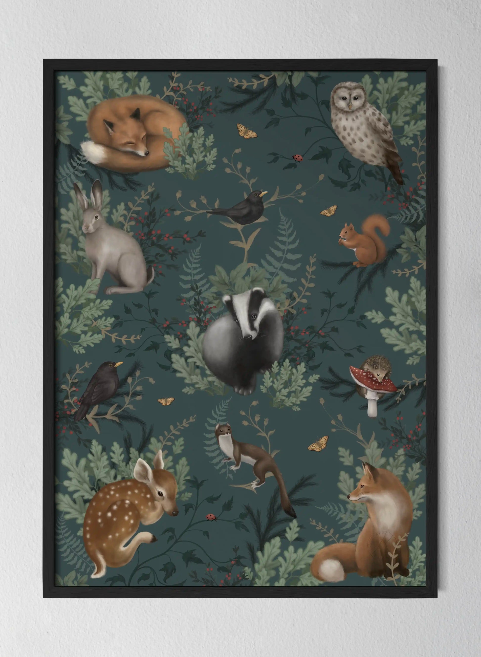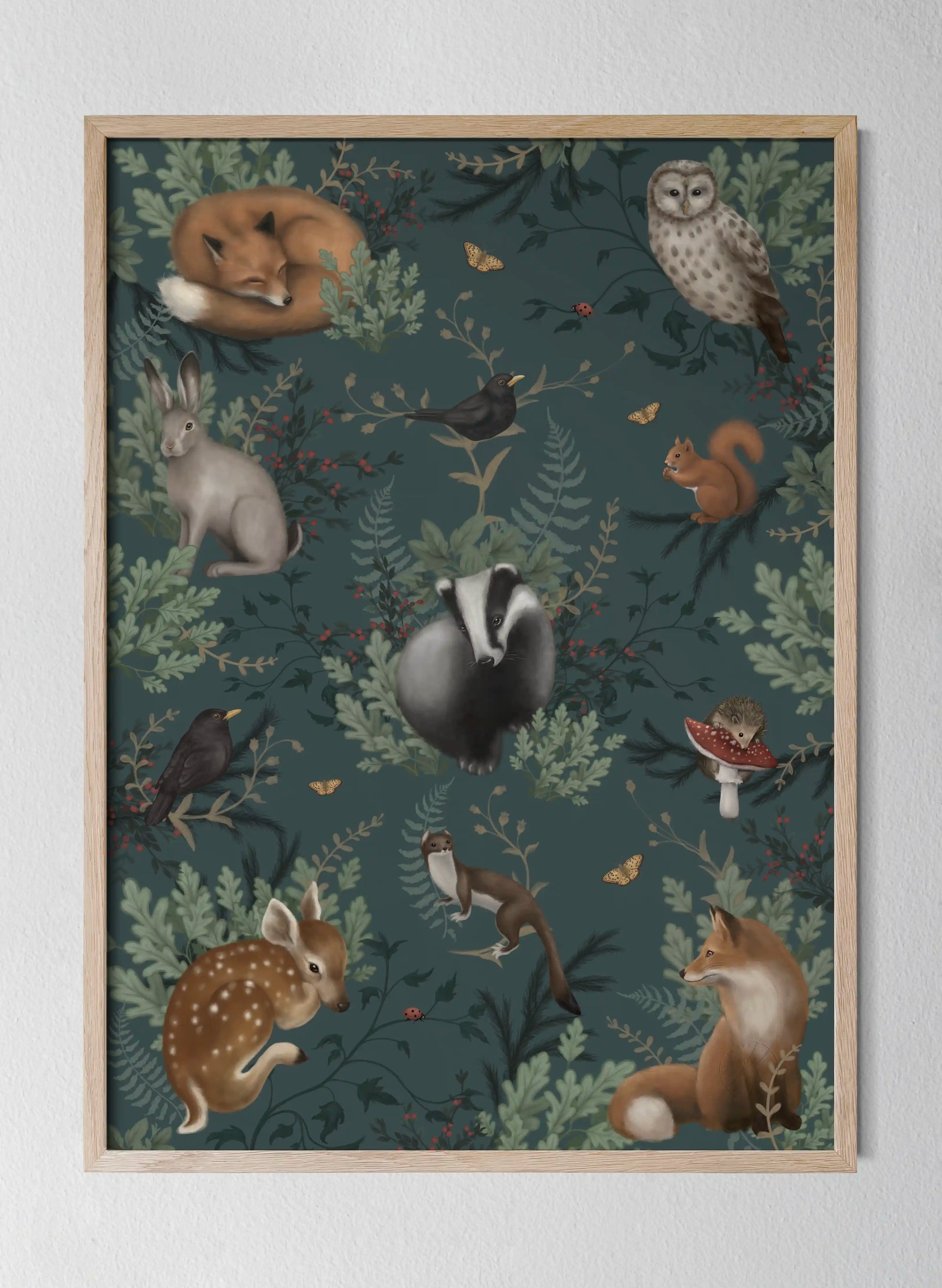 Tavlan som tar dig med på en lugnande skogsresa. Låt blicken vila på skogens fridfulla invånare, omslutna av djupa, gröna harmonier – känn hur lugnet sprider sig som en mjuk skogsbris.
