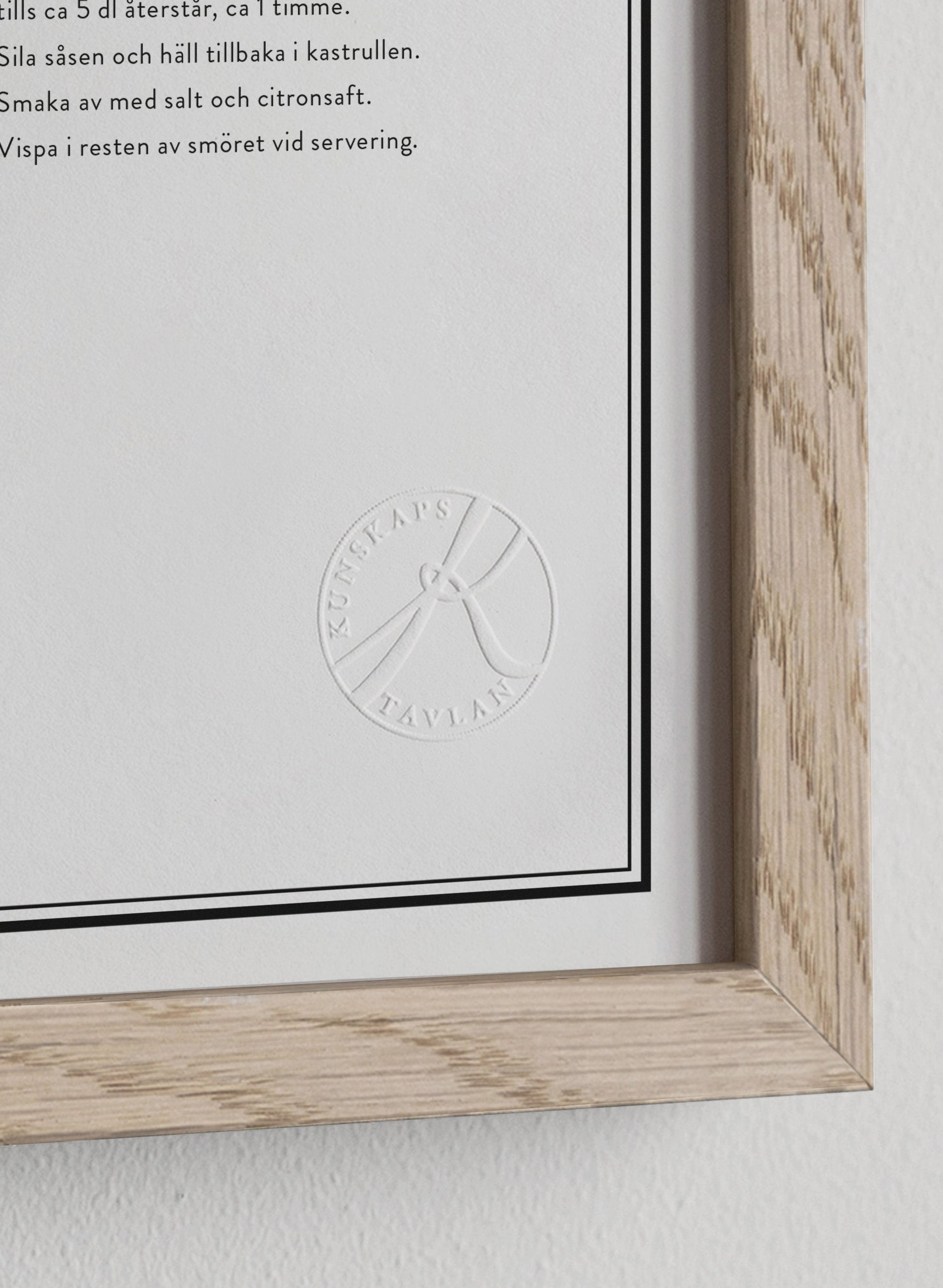 Kunskapstavlan® produceras på ett miljövänligt matt premiumpapper. Vårt papper är både åldersbeständigt och certifierat med EU Ecolabel och FSC. Alla tavlor signeras med vårt handpräglade sigill vilket för varje exemplar unikt. Självklart trycks Kunskapstavlan® hos vårt Svanen certifierade tryckeri i Sverige.